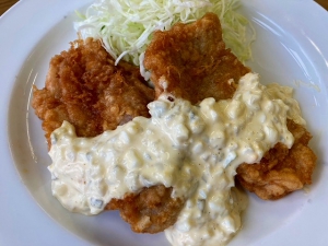 “lightly battered and deep fried chicken covered with sweet and sour sauce with tartar sauce” ¥600