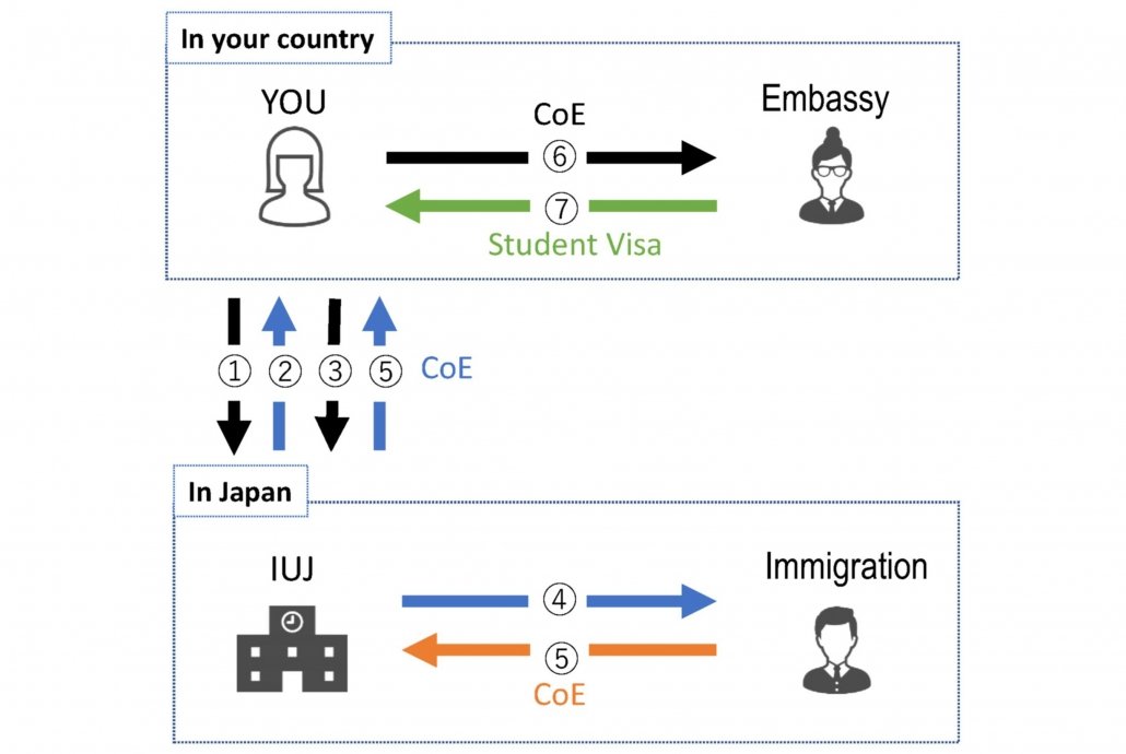 - IUJ applies for your Certificate of Eligibility (CoE) for a Student Visa.