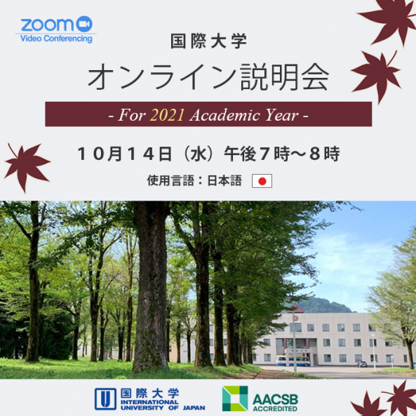 国際大学(IUJ)では、志願者向けオンライン説明会(Zoom使用)を開催いたします。