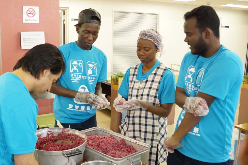 本年、特別イベントとして「国際握飯(にぎりめし)祭 International “ONIGIRI” Festival」が南魚沼市と共催で同時開催され、注目を集めました。本学が位置する南魚沼市はお米の産地であり、コシヒカリが有名です。この南魚沼コシヒカリのPRを目的とし、南魚沼市と国際大学(IUJ)が手を結び、12か国出身の学生で構成された8チームが、母国の文化や歴史、想いがつまったオリジナルおにぎりを生み出しました。どの学生もおにぎり作りは初めてのため、悪戦苦闘しながら数百個のおにぎりを作り終えました。各チームによるおにぎりの発表、審査員による審査を得て、各チームが各賞を得ました。フードブースでは、全てのおにぎりの試食が配られ、地域の方がたに喜ばれました。