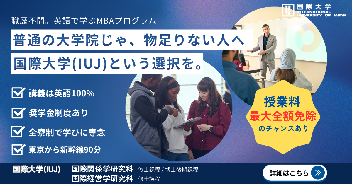 多国籍な学生と共に、国際社会で活躍するための専門知識と視野を磨ける「国際大学(IUJ)」。進学を検討されている方はまずはオンライン説明会にご参加ください。