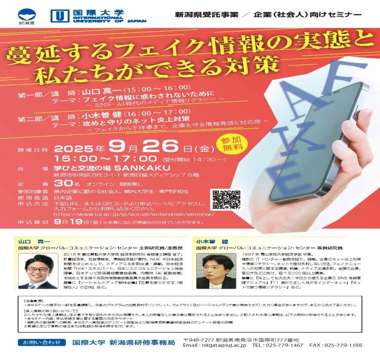 本セミナーではまず、広がり続けるフェイク情報の最新動向と、私たちができる情報の見極め方を解説します。